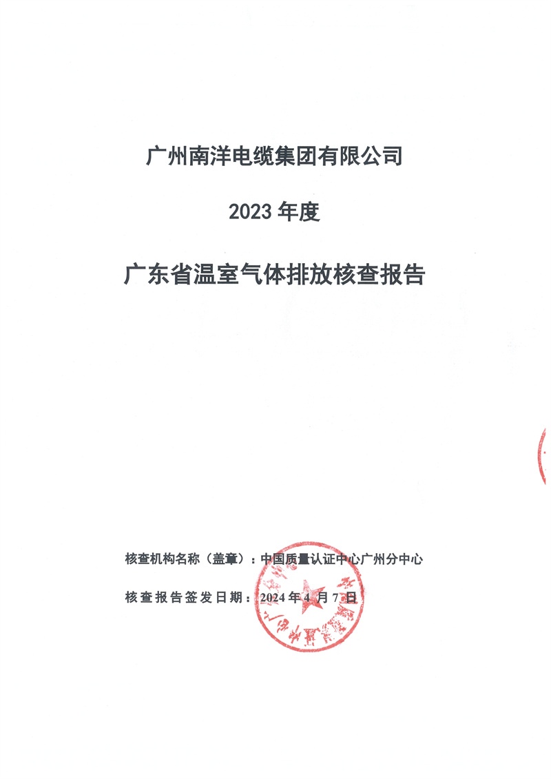 廣州南洋電纜集團(tuán)有限公司2023年度廣東省溫室氣體排放核查報(bào)告